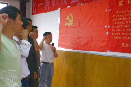 会上,五名新党员面向党旗庄严宣誓,光荣加入了中国共产党。新老党员代表作了发言。场领导为获得表彰的3个先进党支部、3名优秀党务工作者、10名优秀共产党员颁发了奖状和荣誉证书。