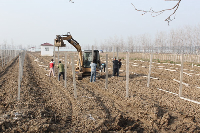 目前,农场职工发展高效农业积极性空前高涨,每天投入人工1000多人次,现已栽种葡萄苗6万多棵,架设葡萄桩2万多个,3月内即可全面完成葡萄种苗定植任务。(武晓瑜)