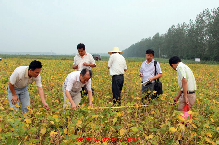 专家组听取了华阳河农场大豆高产创建工作汇报,深入不同品种的大豆田间进行了现场多点测产,测定高产示范片平均亩产277.7公斤,大面积生产田平均亩产203.9公斤。专家组验收意见认为,华阳河农场大豆生产选用品种适宜,管理技术到位,长势均匀,病虫害轻,单产水平较高,达到我国南方地区先进水平。