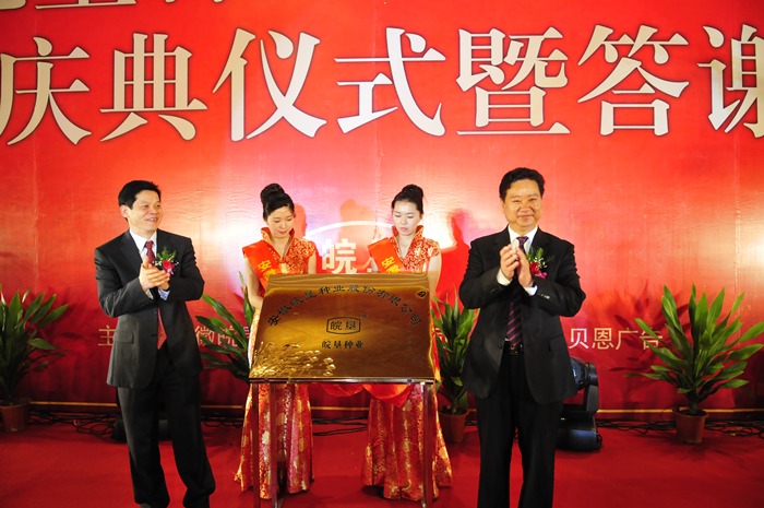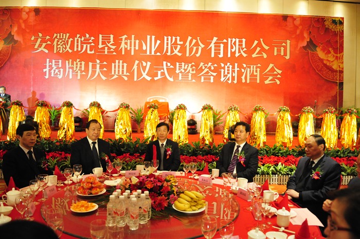 3月26日,安徽农垦第一家股份公司——安徽皖垦种业股份有限公司揭牌庆典仪式在合肥政务新区天鹅湖大酒店隆重举行。省人大、省政府、省政协、农业部农垦局及有关部门领导同志出席庆典仪式,安徽省人民政府副省长黄海嵩和农业部农垦局局长李伟国共同为皖垦种业股份有限公司揭牌。仪式由农垦集团副总经理、皖垦种业总经理王占廷主持,省内外200多家企事业单位到会祝贺。