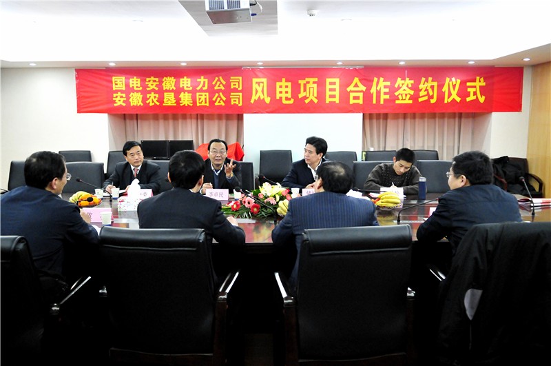 为合作开发和有效利用安徽农垦辖区风能资源,积极推进安徽农垦大的合作项目落实,2011年1月20日下午,安徽农垦集团与国电安徽电力公司在集团公司18楼会议室举行风电项目合作开发框架协议签约仪式。签约仪式由国电安徽电力公司总经理张长岩和省农垦集团公司总经理李卓民共同主持,张长岩总经理和李卓民总经理分别作为双方代表签署合作协议,省农垦集团公司纪委书记储诚胜,经济开发合作部部长汪光荣、办公室副主任鲍广云,国电安徽电力公司规划建设部副主任蓝林,国电力源电力发展公司总经理周桂冉、副总经理戴国华、规划建设部主任周宏等出席签约仪式。