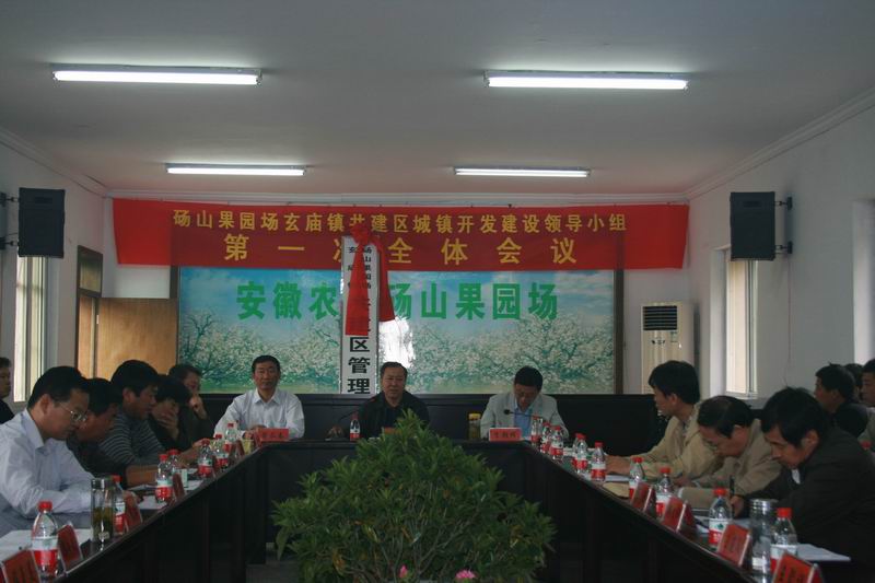 10月10日,安徽农垦砀山果园场与砀山县玄庙镇共建区城镇开发建设领导小组第一次会议暨管委会揭牌仪式举行。砀山县委书记张祥根、砀山果园场场长曹长春、共建区城镇开发建设领导小组成员及场镇有关负责人参加了会议和揭牌仪式。砀山县委副书记李朝晖宣读了砀山县委《关于加快推进砀山果园场、玄庙镇合作共建的意见》和《关于成立砀山果园场、玄庙镇共建区城镇开发建设领导小组和管委会的通知》,砀山县、砀山果园场、玄庙镇领导先后致辞或发言。曹长春场长和段梅英副县长为共建区管委会成立揭牌。与会人员还参观考察了皖垦果业有限公司千吨气调库和连栋大棚。