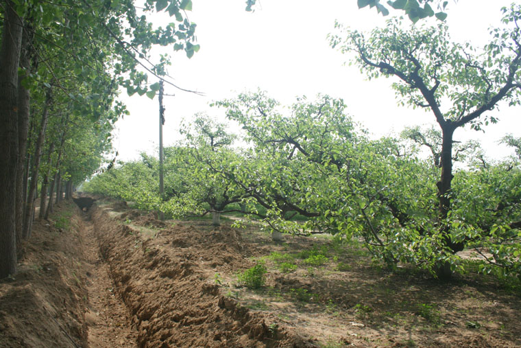 自3月以来砀山县域内一直无有效降雨,两个多月的旱情影响了水果正常生长。砀山果园场组织动员职工抗旱确保果树生长,开动了节水灌溉系统,充分利用果园机井和黄河故道水源浇灌果树。在浇灌安排上结合不同水果生长发育的特性,做到桃树优先,高效园优先;在浇灌方式上采取渗灌和漫灌相结合;在浇灌组织上充分发挥职工的主观能动性。目前全场60%以上的果园得到了有效浇灌,极大地缓解了旱情。