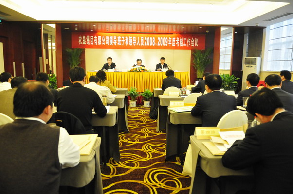 会议按照规定程序对集团公司领导班子和领导人员2008、2009年度经营业绩、政治素质、团结协作、作风形象、廉洁自律等方面进行了民主测评。集团公司领导及各部门正处级负责人,各场场长和党委书记,集团全资、控股和参股公司董事长或总经理参加了会议。