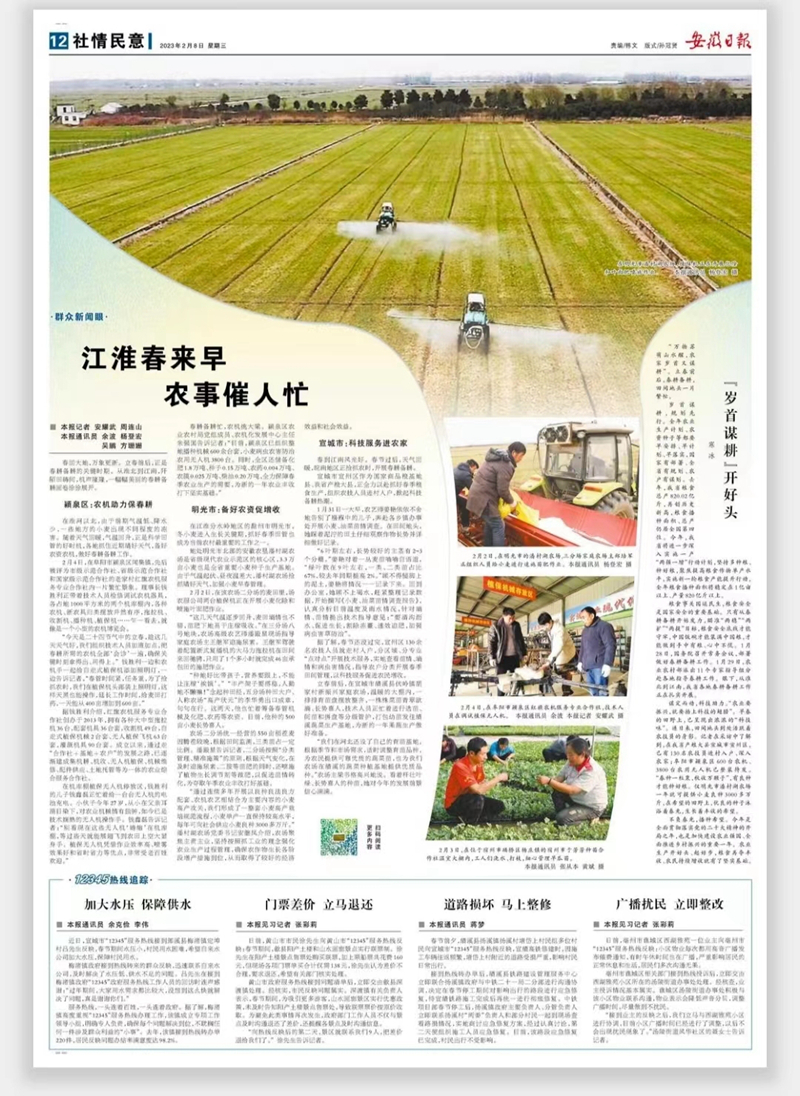 春回大地,万象更新。立春前后,正是春耕备耕的关键时期。从淮北到江南,阡陌田畴间,机声隆隆,一幅幅美丽的春耕备耕画卷徐徐展开。