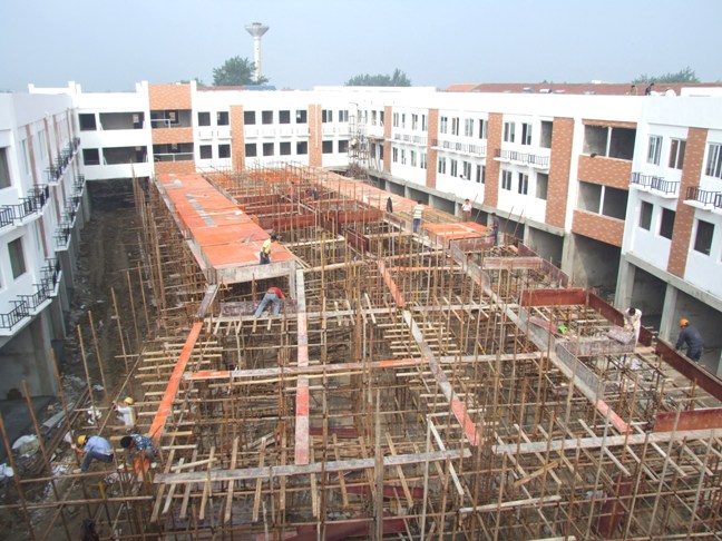 连日来,龙亢农贸大市场建设工程进度快。目前,大市场南区工程建设按计划进入了后期施工阶段。其中1-4号楼完成了外墙面贴砖工作,5号楼的建设即将封顶。